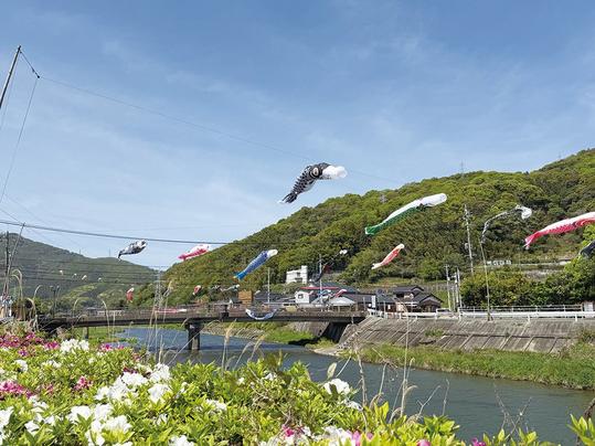 【周南】富田川の空にこいのぼり 「地域で取り組む大事な行事」