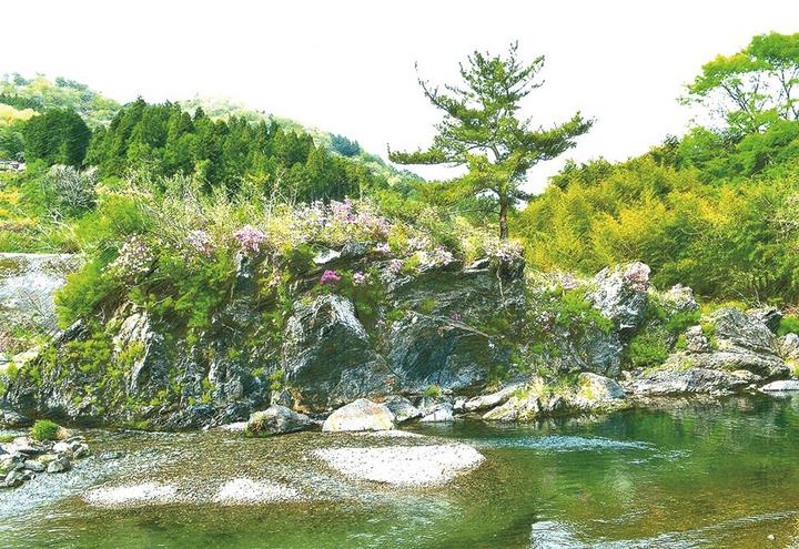 新緑をまとった一本の松の木がマストのように立ち、デッキのような周囲の岩には満開のツツジの花が飾り付けられているように見える。自由な発想はできるだけ現実から遠く離れているほうが、楽しみが増してくる。