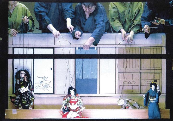 人形の遣い手は、天井からつるされた糸をあやつりながら、人形にその場に応じた所作を与えていく。そのことによって、人形が人形としてではなくあたかも人間が演じているかのような動きとなって観衆を魅了する。