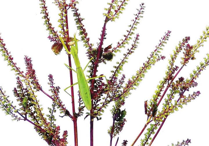 さらに、元気な姿を見せていたのがシソである。シソは、いつもの年であれば、梅干し用の葉を取った後に引きあげていたが、今年はそのまま残しておいた。おそらく、暑さにも強いのであろう多くの花を咲かせた。