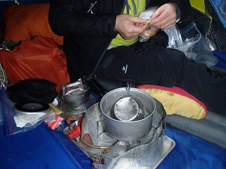 おじさんも頑張る!~山の話あれこれ~ 吉安輝修思い返してみると、ドタバタの出発準備だった。食料の分配や小分け作業は夜中に数時間近くかけて行った。買って来た物をまとめてザックに押し込んでもいいのだが、都度全部を引っ張り出してかき回すことになる。狭いテント内で効率よく素早く食事や翌日の段取りをするとなると、あまりにも効率が悪い。下界の日常生活ではまず考えられないが、1日分ずつチャック付きの袋に詰め替えて、とにかくテント内の作業を簡素化しなくてはならない。それでなくても日が短い季節だ。日没後に無駄にランプを灯して電池を消耗さすのが惜しい。