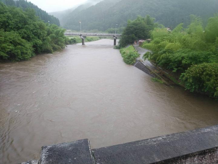 近辺では、連日の雨で地盤が緩むためか倒木や落石といった情報もちらほらと入るが、今のところ(14日現在)家屋の浸水といった大きな被害はない。ただ、ここ須金に至る唯一の幹線道路、国道434号線が菅野ダム付近で通行止めとなり、復旧の見通しも立っていない。何とか中須に迂回して市内に出られるものの、こちらも先日来の雨で片車線をふさぎ危ういのも確かだ。