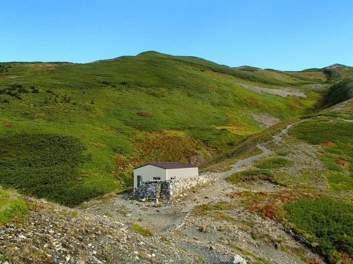 前置きが長くなってしまったが、白馬岳の山頂から2時間ばかりの所に雪倉岳避難小屋がある。名前の通り緊急避難のための小屋で、風雨をさえぎってくれるだけの施設だが、いざという時の心強い存在となる。
