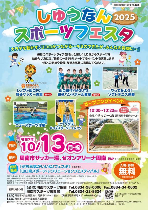 周南市のゼオンアリーナ周南や市サッカー場などで10月13日(月・祝)、午前10時から午後3時頃まで「しゅうなんスポーツフェスタ2025」が開かれる。