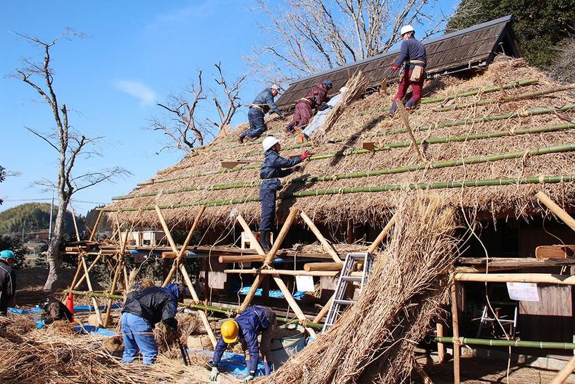 光市教委が4年計画で進めてきた束荷の初代内閣総理大臣、伊藤博文の生家のかやぶき屋根の最後のふき替えが9日までに完了し、10日からは公開を再開して自由に見学でき...