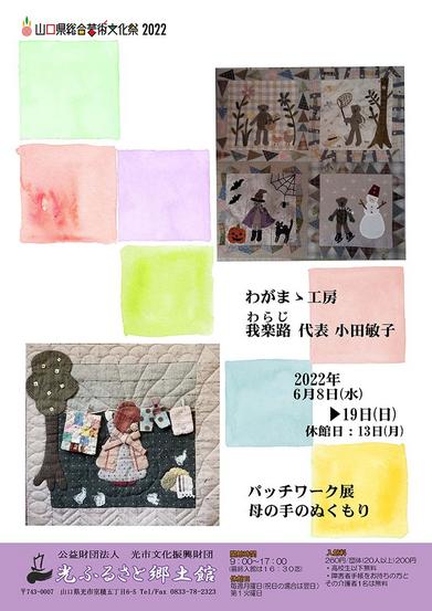山口県光市室積の光ふるさと郷土館で8日から19日(日)まで「パッチワーク展 母の手のぬくもり」が開かれている。同市が拠点のパッチワーク教室「わがまま工房 和楽...