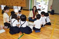 徳山大の留学生と児童 久米小で異文化交流体験