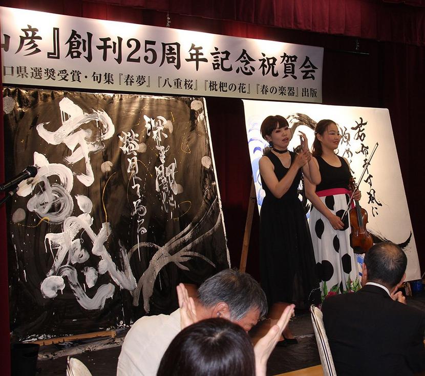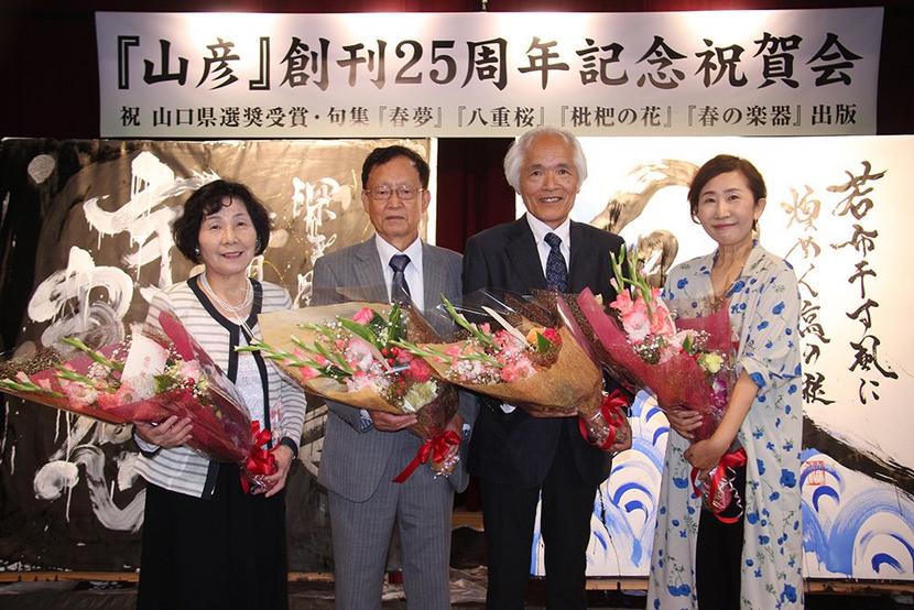 下松市を拠点に活動する山彦俳句会(河村正浩さん主宰、120人)の俳句雑誌「山彦」創刊25周年記念祝賀会が15日、笠戸島の国民宿舎大城で開かれ、県内外の関係者1...