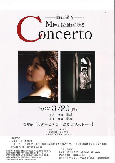 山口県下松市出身で札幌市を拠点に活動しているソプラノの石田実和さんと、周南市若宮町の高橋ピアノ教室の高橋正実さんのコンサート「―時は過ぎ―Miwa Ishid...
