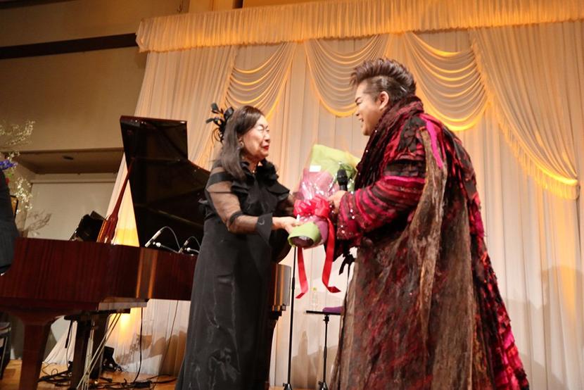 岡本さんに花束を送る久保会長