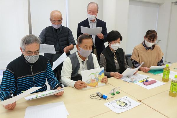 日本の偉人をイラストと音声などをスライドにしたDVDの「電子紙芝居」を作る“すごいぞJAPANプロジェクト”(小林孝二代表、8人)の6人が1日、下松市のほしら...