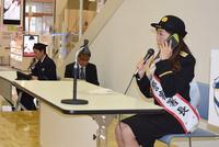 [周南署]高松アナ(山口放送)が一日署長に “110番の日”で模擬通報も