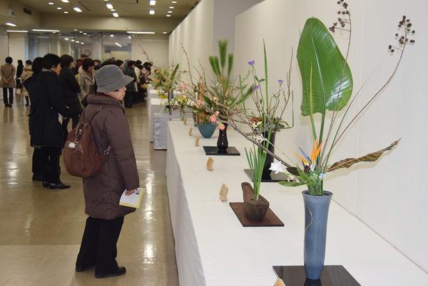 周南市の華道家元池坊徳山支部(逸見朋子支部長)の花展「花と相(とも)に」(新周南新聞社など後援)が3、4日、市文化会館3階展示室で開かれ、50人が出品した。春...