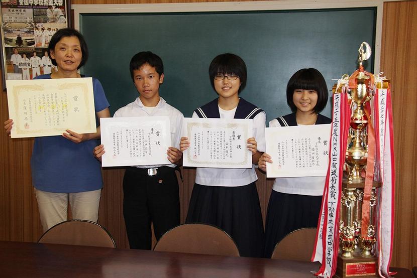 末武中の左から松村教諭、松田君、山本さん、福田さん