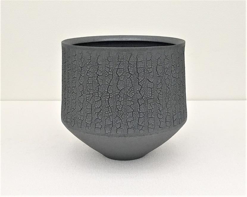 準大賞(立体)の国沢さんの「黒罅彫文器」