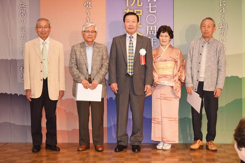周南市を拠点にしている草炎俳句会(久行保徳さん主宰)の俳誌「草炎」70周年記念講演会・祝賀会が19日、ホテル・サンルート徳山で全国各地から130人が参加して開...