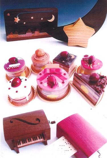木材の色でケーキ型も 10日〜・オルゴールと木のバッグ展