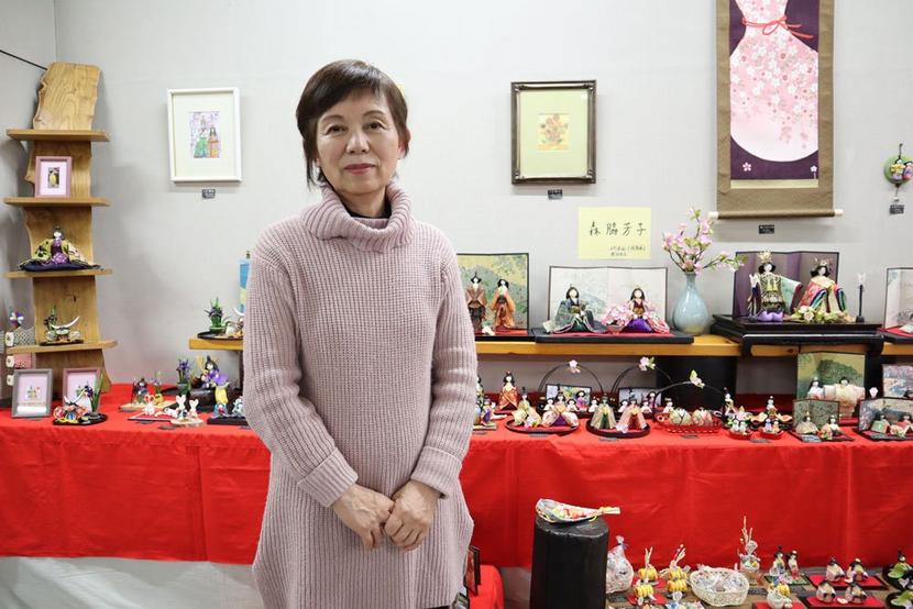 樹脂粘土のひな人形を出展した政所の森脇芳子さん(69)は「無色の樹脂粘土に油絵の具を混ぜて、さまざまな色で表現できるのが特徴。全く同じものがないのが手づくりの良さなので、来場した方は手にとってみて自分が気に入ったものを見つけてほしい」と話していた。