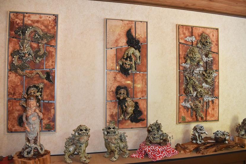 大林さんの陶板や獅子