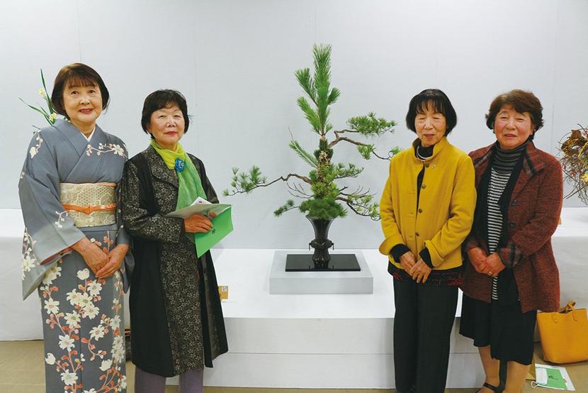 12日には県内の池坊光支部の広川支部長、萩支部の藤井支部長、豊浦支部の吉永支部長も来場し、久しぶりの開催を祝った。