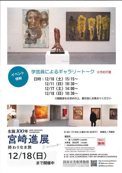 「生誕100年宮崎進展 終わりなき旅」を開催中の山口県周南市の周南市美術博物館で、学芸員が展示作品などを解説するギャラリートークが10日(土)から最終日の18...