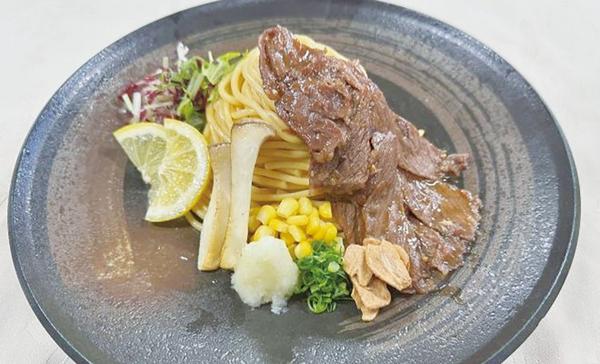 周南市中須の中須ゴルフ倶楽部内のレストランで1日から、春の新メニューが登場している。 新メニューはパスタ麺の上に大胆に肉を載せた「国産霜降り牛のガーリックバ...