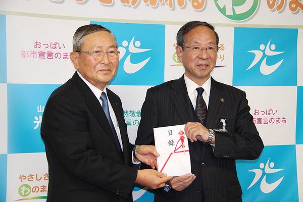 【光市】創業70周年で1,000万円 冨士高圧フレキシブルホースが市へ