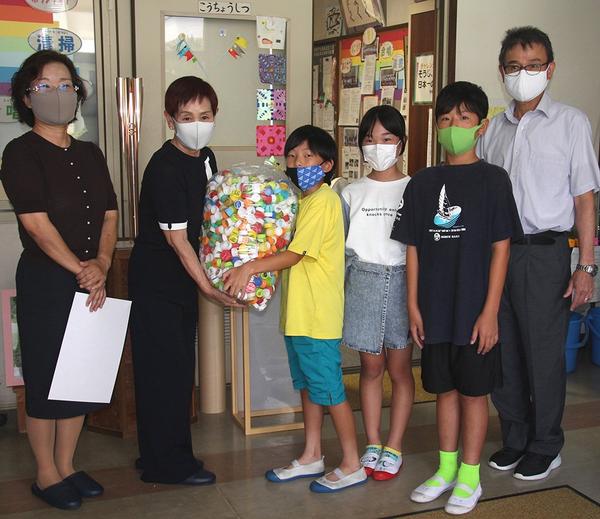世界の子どもたちのために! 岩田小ふた40㌔寄付 光商議所女性会に託して