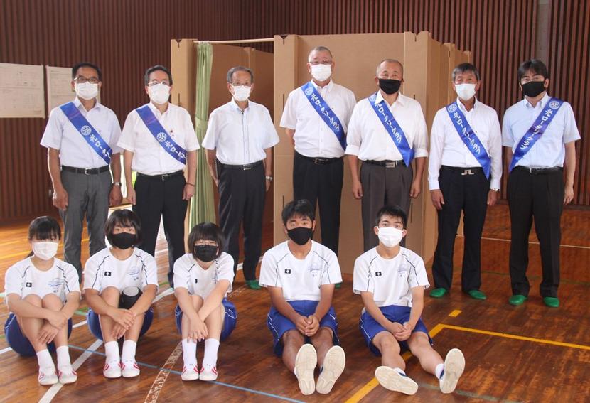 経済光市光市の光ロータリークラブ(時盛真会長、40人)は15日、創立40周年記念事業で総額250万円の強化ダンボール製の避難所用パーテーション(間仕切り)40組を光市に贈った。市は本庁に保管して災害時に避難所に提供する。