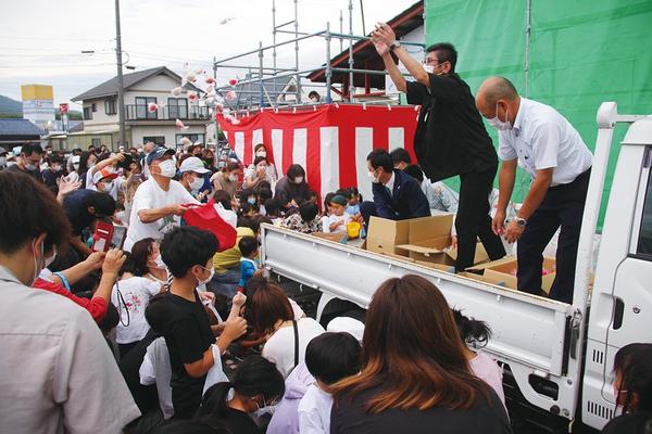 【光市】120キロの餅まきに大歓声 光医療モールが上棟式