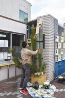 山口県光市の光商工会議所青年部(中林幸一会長、59人)は18日、島田の光商工会館の玄関に門松を飾り付けた。門松の高さは来年にちなんで2,023ミリ。 門松づ...