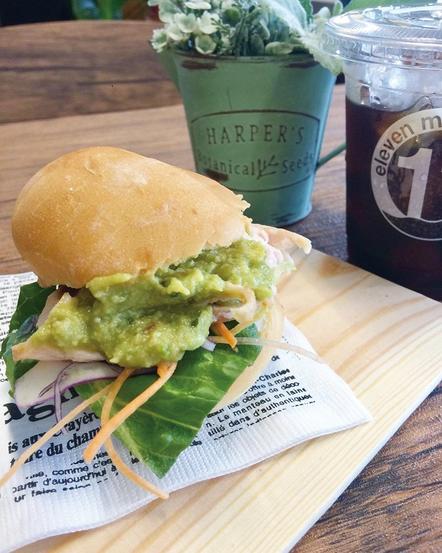 チキンとアボカドフィリングのサンド(280円)は食べ応えがあり、アボカド好きにはたまらない一品。