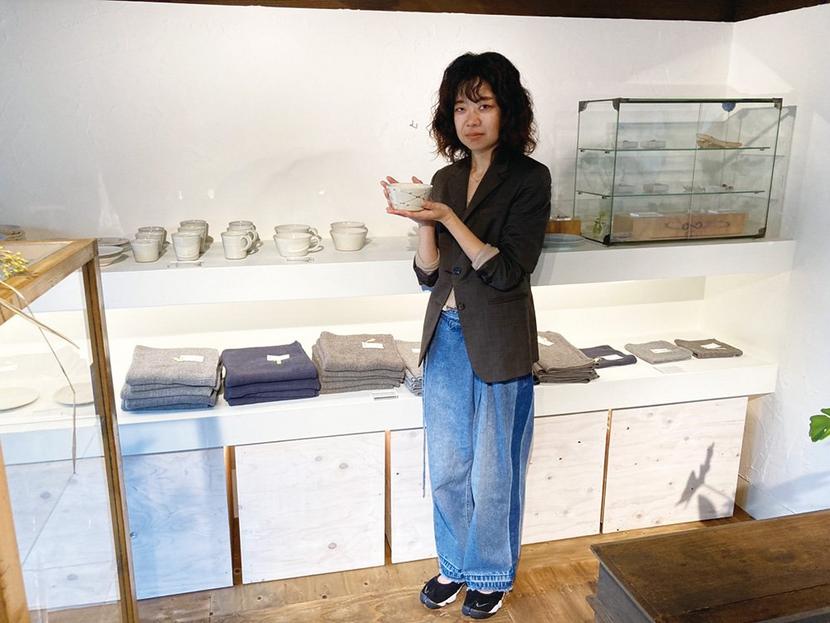 店主は柳井市出身の山近満代さん。器を中心とした手しごと品を広めたいと5年前から出店を計画してきた。