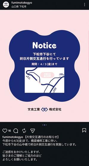 県東部を中心に、道路・河川・橋梁などのインフラの整備を手がける光市浅江の文本工業㈱(文本匡彦社長)のInstagramの投稿がおもしろいと話題になっている。 ...