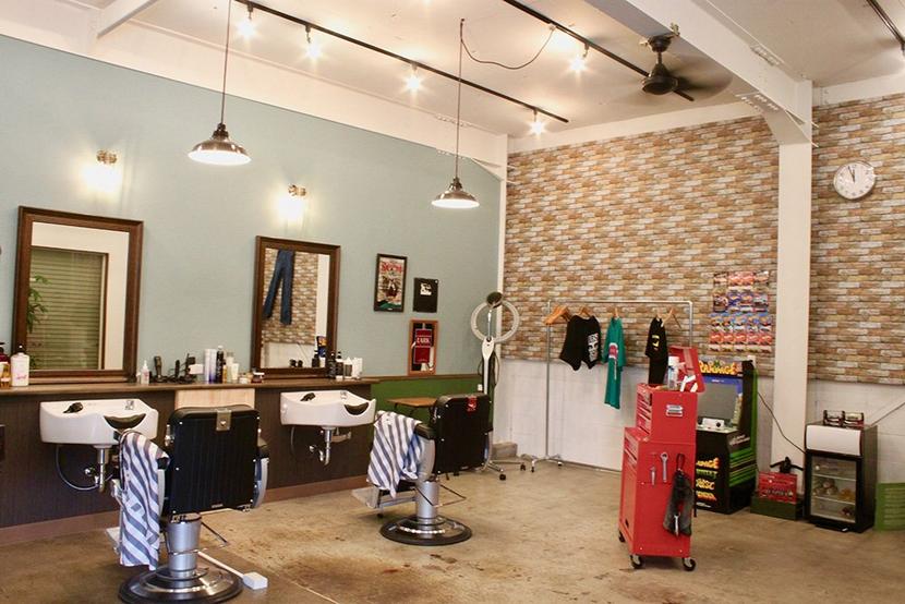 海外のバーバーショップやガレージをイメージした店内