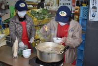 地元野菜のシシ鍋試食 直売所の三田川店で人気