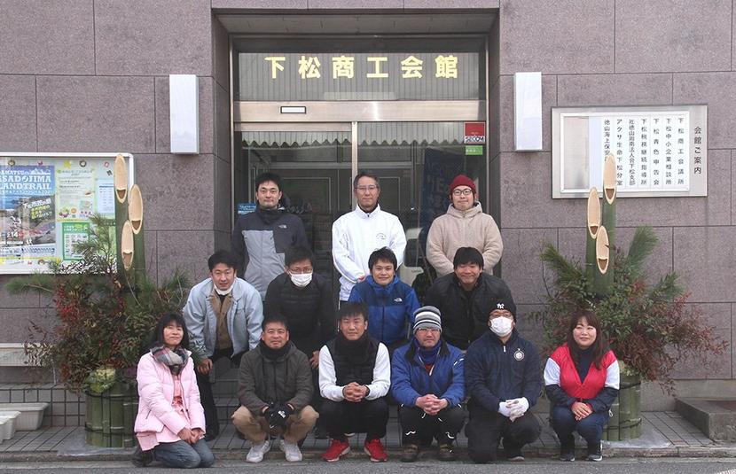 門松づくりを終えた小益会長(前列左から3人目)ら