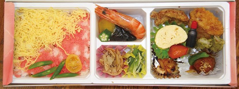 弁当を囲む左から杉山看護部長、橋谷田院長、三宅事務部長