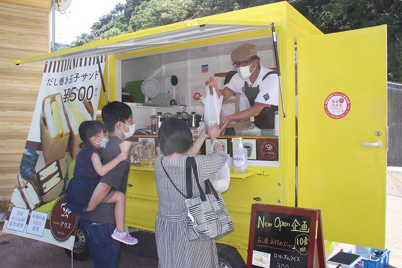 下松市笠戸島の市栽培漁業センター・ひらめきパーク笠戸島(久山裕司所長)の駐車場で2日、キッチンカー「キッチンアリス」の営業が始まった。毎週土曜、日曜、祝日の午...