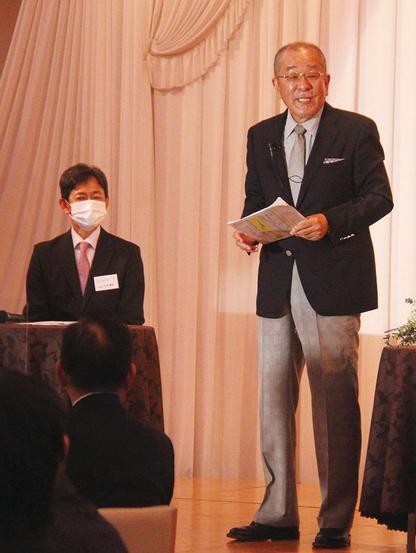 式辞を述べる九内社長