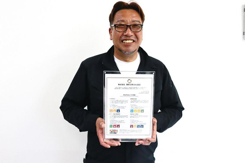 SDGs宣言書を手に持つ濱田社長