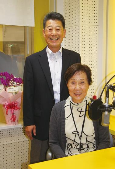 スタジオで20周年を喜ぶ藤田社長(左)と藤田局長