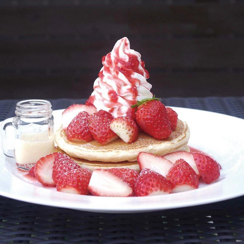 山口県下松市中央町のゆめタウン下松にあるハワイアンカフェ「U'ilani'elua」(ウイラニ エルア)がイチゴたっぷりの「季節のフルーツパンケーキ」(1,5...