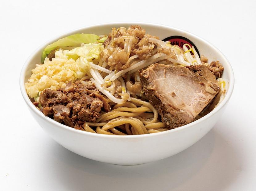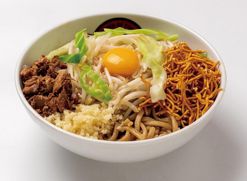 同店限定メニューに、野菜、肉、生卵、ラーメンスナック、ニンニクなどを混ぜて食べる「汁なしラーメン」(1,050円)、香ばしい魚粉と背脂の濃厚なつゆにつけて味わう「背脂魚介つけ麺(めん)」を用意。