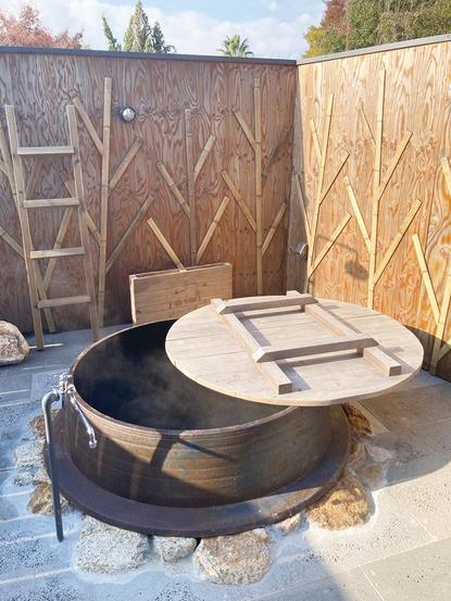 1日1組限定のオプションとして直径1.3メートルの五右衛門風呂、3〜4人で同時に整えるサウナも利用可能。上質な体験を加速させる。