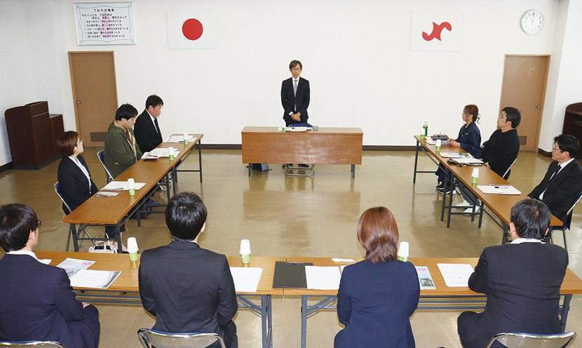 あいさつする九内委員長
