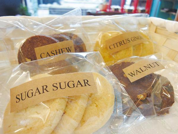 自然派クッキーでおもてなし クッキーとケーキを売りにする。ベーキングパウダーや保湿効果のある添加物「トレハロース」を使用せず、沖縄産のサトウキビで作った「本...