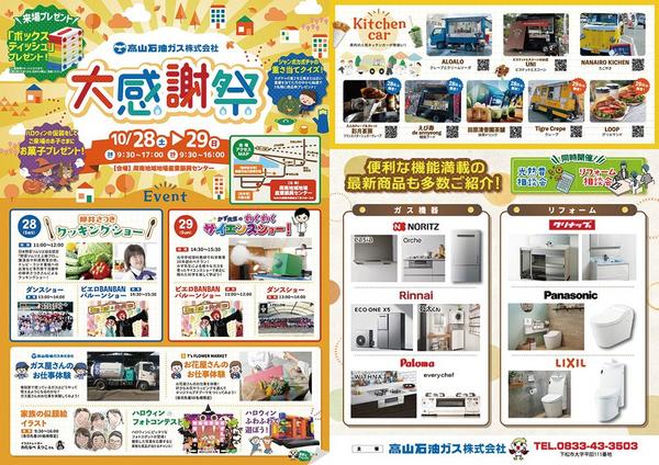 山口県下松市の高山石油ガス㈱(松本真一良代表)が28日(土)・29日(日鼓海)、周南市鼓海の周南地域地場産業振興センターでクッキングショーや仕事体験ができる年...