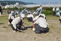 【周南市】近隣企業の100人が草取り フェスタ前にみささ公園清掃