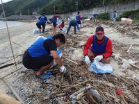 大津島の海岸を清掃 企業、徳大生、住民80人
